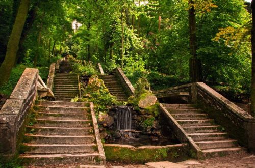Buçaco Forest was first settled in the sixth century by friars from a nearby Benedictine monastery; five hundred years later the Bishops of Coimbra took possession of the forest and in 1628 donated it to the Order of Discalced Carmelites. The Carmelite monks promptly built a convent, perimeter walls and the first of the forest’s ten gates. Two papal bulls were issued during this period: the first, dated 1622, prohibited women from entering the forest; the second, dated 1643, threatened to excommunicate anyone found harming the trees. The text of both bulls is engraved on stone tablets affixed to the outer wall of Portas de Coimbra. At the end of the seventeenth century small chapels representing the Stations of the Cross were built along the Via Sacra, a steep, winding path that leads from the convent to the forest’s highest point, Cruz Alta. The length of the path and distances between chapels were carefully measured to depict Christ’s journey from the Mount of Olives to Calvary.